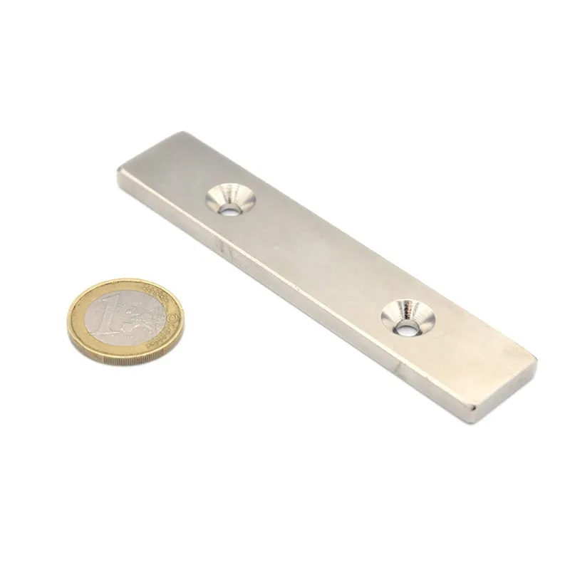 Magnet neodim bloc 100 x 20 x 5 mm cu găuri îngropate D4,5 / D9,46