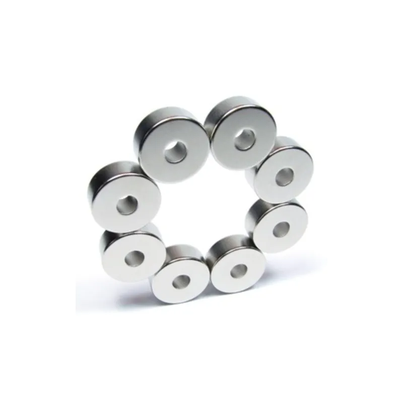 Magnet neodim puternic, formă inel, placat cu nichel, N45, forță aproximativ 2,5 kg, magnetizare diametrală (paralelă cu diametrul).