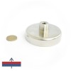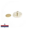Magnet oală plat, prevăzut cu gaură pe mijloc potrivită pentru șuruburi M5 (5 mm) cu șanfren. Carcasă este din oțel și placată cu nichel iar miezul este magnet ferită. Incredibil de util atunci când doriți sa atașați ferm proiectului dumneavoastră un magnet. Este folosit atât în dispozitive electronice cât și în procesarea metalelor, construcția mașinilor/utilajelor sau chiar magazinelor sau fabricilor. Nu este folosit ca detașator de alarme, deși asemănarea vizuală va poate induce în eroare.
